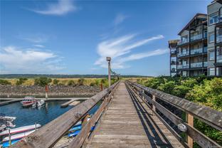 Walk-on waterfront with a resort-like feel! Panoramic ocean views! Located in the highly desirable Whaler building, this exceptional two-bedroom, two-bath condo is one of the large units in one of the best spots! It has access from the parking lot (no need to enter the lobby). Unique to most, this unit has an enclosed private back patio, approximately 466 sqft, making it ideal for pets, entertaining, and gardening. There is also an additional patio on the front of your unit with amazing ocean views where you can enjoy those stunning sunrises! The Whaler building is the only building in the complex with a roof-top patio, perfect for watching cruise ships and marine life. It is also the location of the indoor pool, hot tub, and fitness centre. You will live the island dream with added facilities such as a marina (boat size restrictions), a fish cleaning station, beach access, and more.