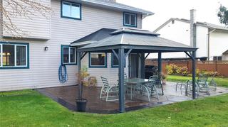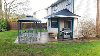 This lovely 3-bedroom + bonus room home in the sought-after Springbok subdivision of Campbell River is thoughtfully designed for family living and entertaining. The main floor welcomes you with a bright, inviting living room adjacent to the entryway, flowing into a formal dining area and walk-through kitchen. A breakfast nook and a cozy sunken family room, complete with a wood stove, create a warm, relaxed atmosphere. Patio doors open to a fenced backyard featuring a new stamped concrete patio with gazebo, ideal for outdoor gatherings. Upstairs, the open landing connects to a spacious bonus room and all three bedrooms. The primary suite includes a walk-in closet and a 3-piece ensuite, adding a touch of convenience. Located on a quiet street, this home offers easy access to nearby playgrounds, schools, shopping centres, recreation facilities, and the natural beauty of Beaver Lodge Lands. See the virtual tour at https://Don-Corder--PREC---Re-Max-Check-Realty.vr-360-tour.com/e/UwQBkyLnezs/e.