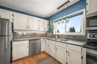 Discover 2165 Downey Ave - a bright 3-bedroom + Den, 2-bath family home in the heart of Comox! This ground-level entry home with main living upstairs captures stunning ocean and mountain views from its large deck overlooking Comox Bay. Thoughtfully designed for easy family living, it features two cozy gas fireplaces, laminate flooring, a refreshed kitchen and main bathroom, 4yr old roof, RV parking, a beautifully landscaped fully fenced yard with sunny southern exposure and a covered patio area for an extra hang out spot. Use the single garage for a car, storage or a workshop. Located close to schools, parks, shopping, restaurants, and bus routes. This move-in ready home offers the perfect blend of comfort and convenience. Ideal for families or anyone seeking a well-maintained home. A rare opportunity to enjoy ocean views at an incredible value!