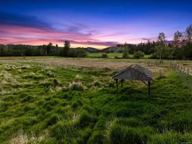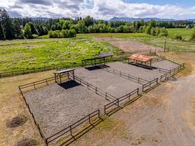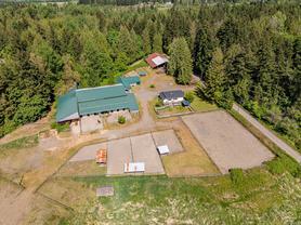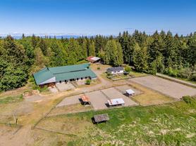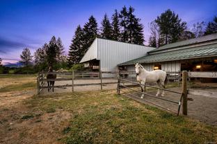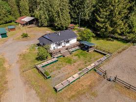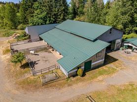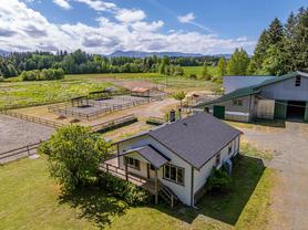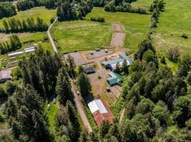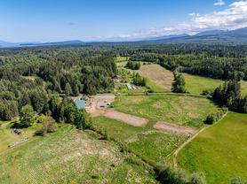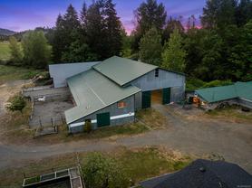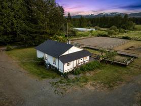 Welcome to your dream rural retreat! This breathtaking 13-acre property offers panoramic mountain views, unforgettable sunsets, and endless possibilities for living, working, and relaxing in one of Vancouver Island's most sought-after regions. Nestled in a tranquil and private setting, this versatile acreage is fully fenced and ready for a variety of uses—whether you're envisioning a productive agricultural operation, an agri-tourism destination, a hobby farm, or simply a serene escape from city life. The charming 2-bedroom farmhouse is full of rustic character and comfort, perfectly positioned to take in the sweeping views of the surrounding mountains and skies. Step outside to explore the impressive infrastructure: over 15,000 sq.ft. of outbuildings, including a substantial indoor riding arena. These facilities offer exceptional flexibility—ideal for equestrian pursuits, large-scale events, heavy equipment storage, dog boarding/agility training, or other creative ventures. Located just minutes from the outdoor recreation haven of the Village of Cumberland and the full services of the City of Courtenay, this property provides the perfect blend of peaceful rural living with convenient access to modern amenities.