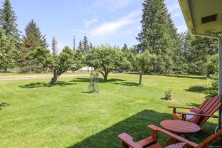 This charming and well-maintained 2-bedroom (easily 3 again) home sits on a beautiful 4-acre lot. Half cleared & landscaped, half treed with peaceful walking trails. Enjoy true country living with a small barn/woodshed, chicken coop, detached garage & a fenced garden area. The bright, updated interior features new paint, some new flooring & a sunny kitchen with a gas stove. The walk-out basement offers a cozy family room with a wood stove, laundry, storage & workshop space. Upgrades include a newer gas furnace, septic tank, perimeter drains, and piped water. Located just minutes from Courtenay and Comox, this move-in ready home offers the perfect balance of rural living & the convenience of town. The best of both worlds! This home is move in ready and waiting for it's next family.