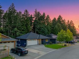 Modern living meets versatility in this stunning 2020-built 3 bed, 2 bath rancher with full walkout basement with over 3,200 sq ft of total space tucked away on a quiet cul-de-sac close to both Comox and Courtenay amenities and backing onto treed land. Downstairs offers a fully self-contained, spacious, legal 2 bedroom suite with its own laundry room and great parking—perfect for extended family or rental income, with optional interior access to main home. The main level features 9-ft ceilings, a beautifully appointed kitchen overlooking treed privacy, and a luxurious primary ensuite with a glass tile shower. Enjoy a fully fenced yard, irrigation system, RV parking, and a large unfinished area downstairs ideal for storage, a home office, or rec room. This property offers both beauty and the feeling of seclusion yet minutes to schools and amenities.
