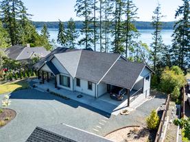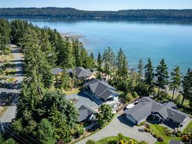 West coast living at it's finest! This newly built walk-on waterfront home perfectly captures the essence of West Coast living—where it's just you and nature. Nestled in the tranquil enclave of Ships Point Peninsula, this stunning property boasts 90 feet of pristine ocean frontage. The beautifully landscaped grounds offer eady access to the water—a true kayaker’s dream. Step through the front door into a space that blends natural beauty with modern elegance. Warm white oak engineered hardwood floors, European-style windows and doors, and custom cabinetry set the tone throughout. The open-concept living area features a striking Napoleon fireplace, but it’s the panoramic ocean views—framed by expansive wall-to-wall windows—that will truly take your breath away. The gourmet kitchen is a chef’s dream, complete with a large island, quartz countertops, Thermador appliances, and a Wolf induction stove. Step out to a spacious deck, perfect for al fresco dining or simply soaking in the ever-changing views of herons and eagles with Denman Island in the distance. Adjacent to the kitchen, a versatile family room can serve as a cozy retreat or a formal dining space. The primary suite offers mesmerizing ocean views and an ensuite featuring a large walk-in shower. A second bedroom enjoys abundant natural light and a 2-piece bathroom. The functional laundry/mudroom includes a dog washing station and convenient access from the carport. Downstairs, the walkout lower level is an entertainer’s paradise with a large recreation room, a third bedroom, a full bathroom, a flex room (ideal for a gym or your wine) and a separate space perfect for a future bar area. A private den with ocean views makes a perfect office or guest room. Ample storage options include a crawlspace and a 15' x 9' insulated and heated room. The garage offers 200-amp service, a generator that automatically protects your fridge and freezer while you're away and an attached carport - for your boat or RV. 2-5-10 Warranty
