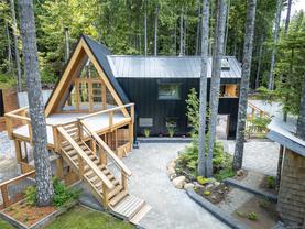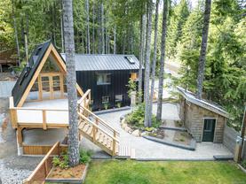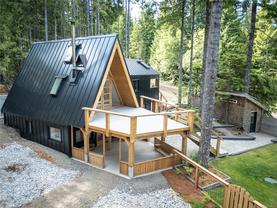 Discover a one-of-a-kind alpine escape on Courtenay’s legendary Forbidden Plateau. This 2-bed, 2-bath A-frame chalet combines striking architecture with modern performance. Bright and south-facing, it features triple-pane windows, heated tile floors, vaulted ceilings, Bosch appliances, and a Blaze King wood stove for cozy efficiency. Spa-inspired baths, floating vanities, and hardwood accents elevate the interior, while five cedar decks extend living outdoors. Built with durability in mind—metal siding, metal roof, R-50 insulation—this home is as strong as it is stylish. A sound-proofed lower-level suite offers income potential or guest retreat. Tech-ready with Starlink internet, EV charger, HRV, and deep-well water system. Set on a private 0.35-acre lot with forest trails, waterfalls, and alpine adventure at your doorstep, this retreat delivers lifestyle, income flexibility, and timeless mountain charm. Whether year-round haven or weekend getaway, it’s a true West Coast sanctuary.