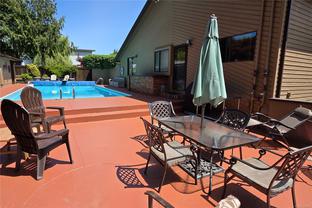 Don't miss this custom built 4,000+ square foot 5-bedroom family home in a very desirable well established neighbourhood, with wonderful ocean & mountain views, designed and built with entertaining and family in mind. The large open kitchen and eating nook feature wall-to-wall cabinets and built-in oven & stove top, and sliding door to the south-facing ocean view deck. The spacious sunken living room has a full bank of bright daylight windows, high vaulted ceilings and a cozy gas insert, and opens to the formal dining area and a quaint & private sunroom. The primary bedroom is one of three on the main level, and features a large walk-in, 5-piece ensuite with double sized jacuzzi tub, and a separate make-up vanity. Downstairs you have 2 more bedrooms and a huge family room with built-in bench seating, pool table, and gas fireplace, ideal for large gatherings of friends or family. Out back, the fully fenced yard has a large patio, lush gardens and the in-ground pool for hosting the family gatherings. This home has been lovingly maintained for decades, and features upgraded Hunter Douglas blinds in the kitchen, roller shades and black-out blinds in the living room, newer roof in 2022, and upgraded with a heat pump for year round heating and cooling. Located in the very quiet Passage View neighbourhood, close to the Sportsplex, the ocean and Willow Point amenities.