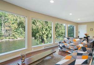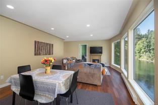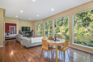 Rare opportunity! This property holds a distinct value as it sits directly along the banks of Campbell River. The River is teeming with various species of salmon, and it offers remarkable opportunities for unparalleled fishing experiences and observing the diverse wildlife. On the top floor, you will discover a 2 bed, 2 bath plus den suite boasting breathtaking views, and a 2bed 1bath suite on the main floor features an open-concept layout that unveils an awe-inspiring space, the dual-sided gas fireplace in between the master bedroom and the living room that adds both ambiance and functionality. large window space overlooking the river. A fully heated basement is perfect for a workshop or storage for fishing gear. In the detached garage, you will discover the studio suite. RM1 Zoning allows you to have up to three dwellings. If you are looking for an incredible property with the potential for extra income, look no further.