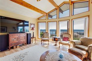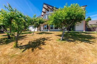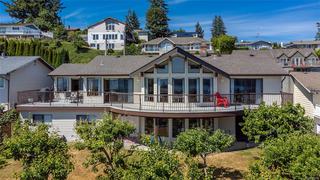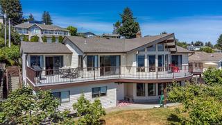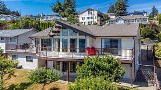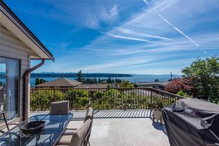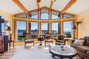 Welcome to your dream home in one of the most prestigious coastal locations, offering breathtaking panoramic ocean views that will leave you in awe every single day. This beautifully designed 3,800+ sq ft residence lives like a rancher, with a walk-out basement that includes a one-bedroom suite and a separate studio—perfect for guests, extended family, or income potential. The main level features 3 spacious bedrooms and 2 baths, including a luxurious primary suite with a 4-piece ensuite, soaker tub, and sliding doors to a view-filled deck. The gourmet kitchen is a chef’s delight, boasting over $20K in high-end appliances, a cozy breakfast nook, and an inviting family space all with that amazing ocean mountain view. Step outside into your private garden paradise—fruit trees, berries and more. With multiple gas fireplaces, elegant living areas, and endless views, this extraordinary home blends luxury, comfort, and nature in perfect harmony.