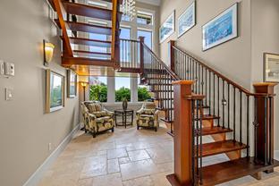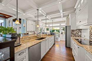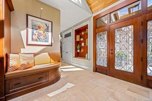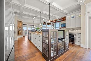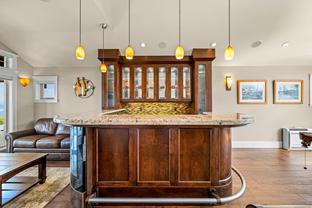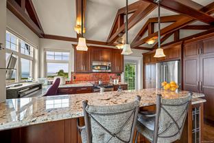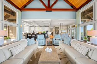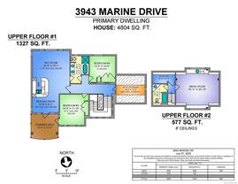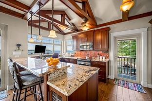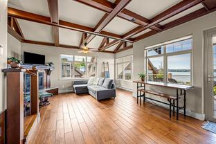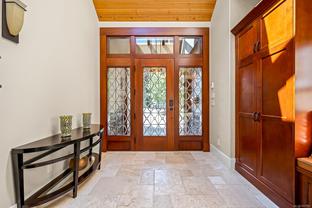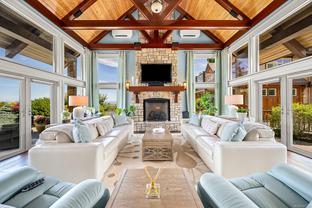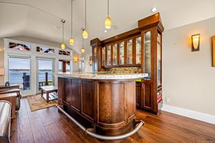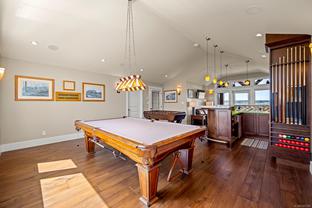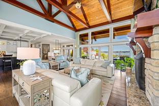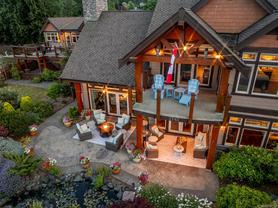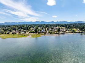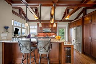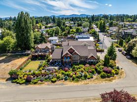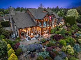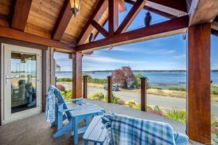 Exceptional semi-waterfront custom timber frame home offers breathtaking ocean & mountain views. With over 4,800 sqft of beautifully designed living space plus carriage home, this architectural gem blends west coast elegance with exceptional craftsmanship. The main residence features 3 beds plus a den & 4 baths, including a luxurious primary suite on the main. Soaring 22’ vaulted ceilings in the great room frame the ocean views, while the stunning kitchen impresses with an induction cooktop, double wall ovens & walk-in pantry. The grand entry welcomes you with natural light & entertaining is effortless with a designated theater & games room complete with built-in bar. Expansive front & rear patios are perfect for taking in the scenery. A fully self contained 2-bed carriage house also enjoys impressive water views and offers flexibility for guests, extended family, or rental income. Professionally landscaped grounds are as impressive as the home itself—lush, private & meticulously maintained. Coastal living at its finest!