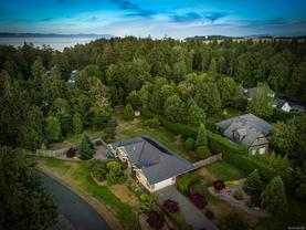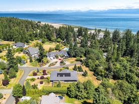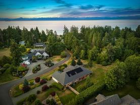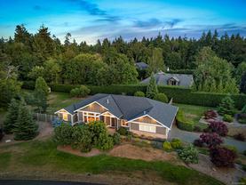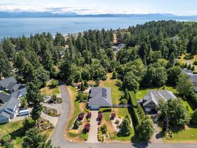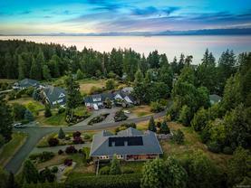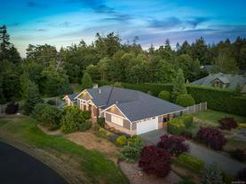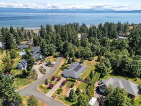 Exquisite Estate Property in Kincora Ridge, a distinctive gated community only 3 blocks to Kin Beach and minutes to Comox. Custom built in 2014, this spacious rancher, 2,252 sf, 3 BD/ 2 BA, is located on a private 1.25 acres. High-efficiency solar panel system and R-2000 with energy rating of 84 create an energy-efficient and environmentally responsible residence. A spacious open plan with 9’ ceilings offer gathering spaces for entertaining and private spaces for quiet time. Gorgeous kitchen boasts Acacia ‘pillow top’ wood cabinetry, a spacious working island with seating, and easy access to the covered patio for summertime dining. The Great room showcases a ledgestone gas fireplace and large windows w/ a focused ocean view towards the beach access. The primary suite offers a walk-in closet, & 5 pce ensuite w/ separate tiled shower, soaker tub, dual sinks and W/C. A bare land strata w/ underground services, natural gas, & a strata state-of-the-art septic treatment facility.