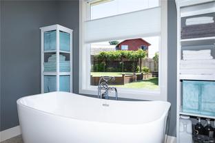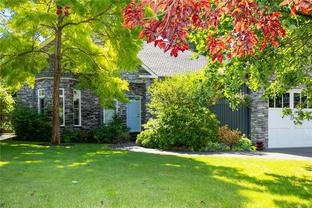 Contemporary, luxury rancher with the most strikingly impressive curb appeal. Situated on .25 acre, private yard, gorgeous mature landscaping sits this stunning, custom home. Entertain in style in the fantastic kitchen with unbelievable storage, granite counters, gas stove & bay windows surround the perfect breakfast nook. The covered patio is located through garden doors off the dining and kitchen area. Relax with your family in the sunk-in living room with 10 ft coffered ceilings and a cozy double sided gas fireplace. The elegant entry also faces the fireplace with easy access to your own office to the left and to the right is the den (or 3rd bedroom). The primary retreat has views of the backyard, spa like ensuite with new soaker tub equipped with programable tub filling/water temperature and walk in closet. The second bedroom is truly king sized! Cultured stone-faced front is the WOW you dream of. Double car garage, heat pump, 9ft ceilings & lifetime roof.