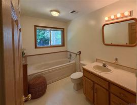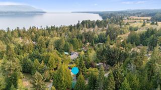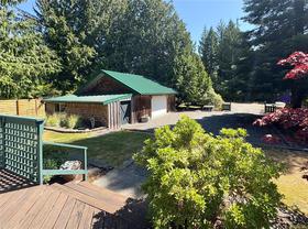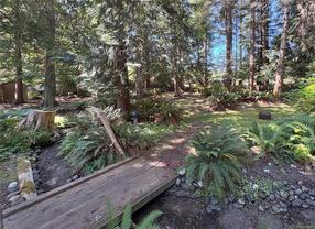 Welcome to this peaceful 2-bedroom, 1-bath home offering over 1000 sqft of charm and comfort, just moments from the sandy shores of Fillongley Provincial Park. This half-acre lot feels like a private sanctuary, with towering Douglas fir, cedar, and spruce sheltering the back garden, plus a seasonal creek and pond that meander through the woods invite birdsong and quiet reflection throughout parts of the year. Step inside the home where you are greeted with vaulted ceilings, large windows, and skylights flooding the open-concept living space with natural light—perfect for family gatherings or cozy evenings in with the propane fireplace tucked into one corner of the main living area. The two bedrooms are quietly tucked at the back, separated by a shared bath for added privacy. A newly roofed detached garage adds even more flexibility, with a guest room or storage space, bathroom, storage and 2 brand new water heaters add to the flexibility and comfort of this property. Laundry hook-ups are available in the garage. A place to unwind, connect, and breathe—whether full-time or just escaping for the weekend, you’ll feel right at home in this quiet and caring Denman Island neighborhood.