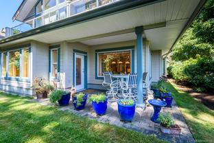 Welcome to a unique opportunity to own a patio home just steps from the scenic Courtenay River Walkway and the Comox Harbour. Enjoy the ease of single-level living with an attached garage and a thoughtfully designed layout featuring 2 spacious bedrooms, 2 bathrooms, and an enclosed flex room-perfect for a home office, studio, or guest space. The bright, open-concept interior offers in-floor radiant heating and 9 ft ceilings with crown moldings. Your private patio that backs into the walking trail with some views of Comox Harbour. The open kitchen features Stainless Steel appliances, Tile Backsplash and under cabinet Lighting. The primary bedroom suite offers a relaxing retreat with a large walking closet and an ensuite that boasting a soaker tub and a walk-in shower. Enjoy immediate access to walking and cycling trails, nearby shops and restaurants, and a lifestyle rich in outdoor recreation with skiing, golf, and marinas just minutes away.