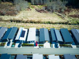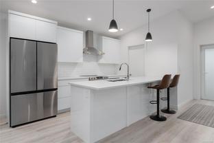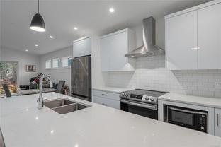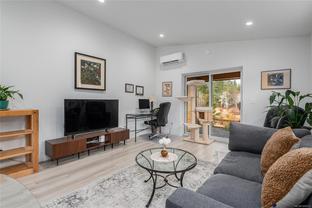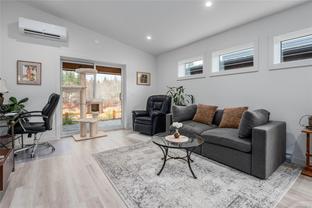 HUGE BONUS: NO GST saves you thousands! Picture your mornings: wake up refreshed in your bright primary bedroom, then enjoy coffee on your private covered patio overlooking trees and greenery. This modern home welcomes you with vaulted ceilings and open-concept living flooded with natural light. The gorgeous kitchen features sleek quartz counters, stylish tile backsplash, and peninsula seating, perfect for everything from quiet breakfasts to dinner parties. Imagine your weekends rolling out of bed and straight onto Cumberland's world-class hiking and biking trails, then coming home to your modern sanctuary. Three bedrooms and two full baths give everyone their own space. Prime Cumberland Flats location offers privacy yet you're minutes from the village's charming cafes, shops, and community events. Smart features mean low maintenance: energy-efficient heat pump, metal roof and siding, EV charger, and two parking spots. Move-in and life-ready, your dream lifestyle starts here.