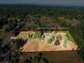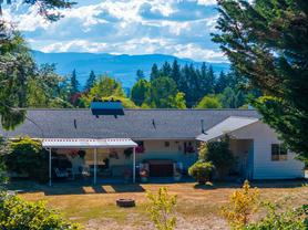 Welcome to 4.34 acres of opportunity in one of North Courtenay’s most sought-after neighbourhoods. Located on picturesque Huband Road, this property offers the perfect blend of rural tranquility and convenience—just steps to Seal Bay Nature Park and within the desirable Huband Park Elementary catchment. The spacious 2,300+ sqft rancher features five bedrooms and 2.5 bathrooms, all on one level. The layout is ideal for family living or hosting guests, and the home is kept comfortable year-round with a heat pump. The property is fully fenced with horses fencing includes a detached garage, ample parking, and two flourishing orchards—one with a variety of apple trees and the other showcasing plums and cherries. A stunning Garry oak tree anchors the peaceful back portion of the property, while the covered patio and hot tub offer the perfect space for unwinding or entertain. Enjoy mountain views from many areas of the property, especially from the front patio! This is a rare opportunity to enjoy acreage living just minutes from town, with space, privacy, and endless potential.