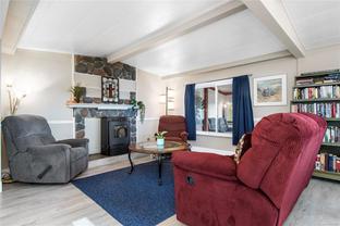Coastal Charm with Ocean Views! Welcome to your next chapter in this beautifully updated ocean-view gem! Nestled in a well-cared-for 55+ community, this bright and stylish 2-bedroom, 1-bath home is move-in ready and bursting with warmth and character. Step into a sun-soaked, open-concept living space with vaulted ceilings and a cozy pellet stove (2018) perfect for both quiet nights in and casual entertaining. The modern kitchen shines with recent updates, while the spacious primary bedroom provides ample storage and comfort. Every detail has been thoughtfully refreshed, including new flooring, countertops, and paint (2020), updated wiring and baseboards (2021), a heat pump (2019), and a fully fenced yard with a new fence (2018) along with two storage sheds offer space for all your outdoor essentials. This is your chance to enjoy low-maintenance coastal living with unbeatable views, community charm, with modern comforts you deserve. Don’t miss out on this rare opportunity!