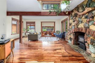 Welcome to 8965 Oakes Road, a home full of character and warmth, surrounded by trees and space to breathe. Sitting on just under an acre, this property blends comfort, creativity, and outdoor connection. A horseshoe driveway with two gated entrances makes access easy, while the detached garage provides space for vehicles, hobbies, or storage. Inside, you'll find personality at every turn, from the stunning rock fireplace with woodstove to rich wood beams and cozy built-in breakfast nook. The updated kitchen pairs style with functionality, and open dining and living areas invite gatherings. The sunroom is a year-round retreat – perfect for morning coffee, reading, or unwinding. The yard offers plenty of space for gardening, entertaining, or simply enjoying fresh air. The back of the property opens to a serene forest setting with towering evergreens and natural woodland. With 3 bedrooms, 2 bathrooms, and a peaceful, private setting, 8965 Oakes Road is ready to be yours.