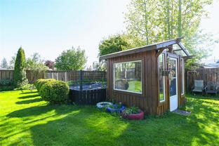 Discover this beautifully renovated 4-bed, 3-bath family home on over half an acre of sunny, level land. This 2,817 sq ft home, originally built in 1974, boasts a new roof, updated hardie board siding, vinyl windows, and a modern heating system. The stylish kitchen features quartz countertops and heated tile floors. The finished garage provides bonus living space, complete with a cozy natural gas fireplace and a 2-piece bath. The primary bedroom offers a large walk-in closet and 3-piece ensuite. The main level includes a den or 4th bedroom with a 4-piece bath featuring heated floors. Outside, enjoy lush gardens, a fenced garden area, a water feature, and a swing under a weeping willow tree. Two sheds offer plenty of storage, and there’s ample parking, including space for an RV/boat. Located near schools, shopping, golf, and highways, this home offers peace with convenience. Closing dates are negotiable and quick possession may be an option.