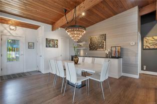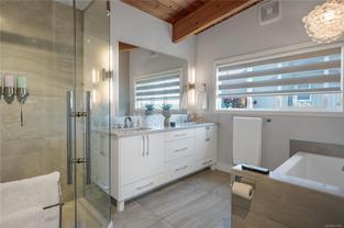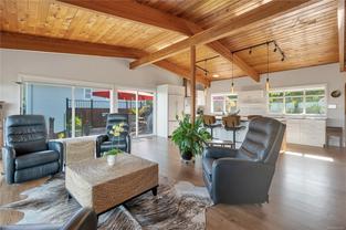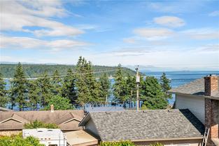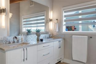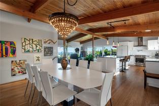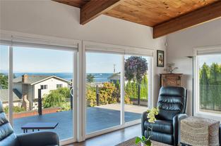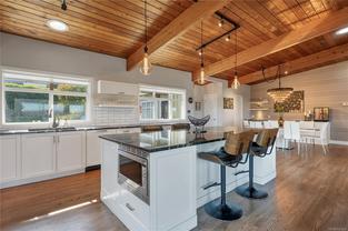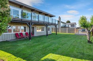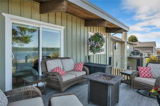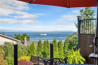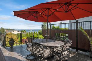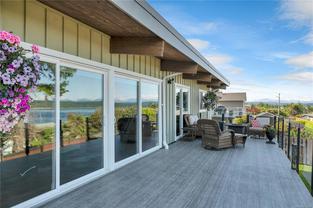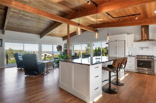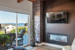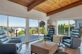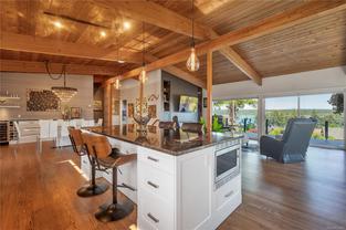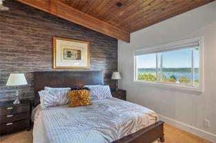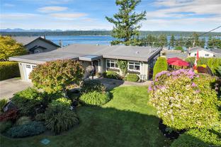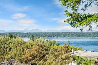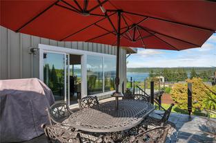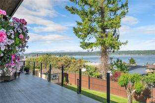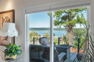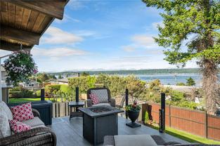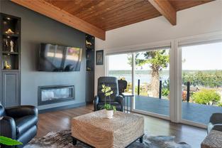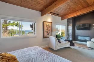 This exceptional residence is a showpiece of design, craftsmanship, and coastal living. Perched to capture panoramic views of the Salish Sea and Quadra Island, wall-to-wall windows flood the home with natural light and breathtaking scenery. With a main-level entry and primary suite on the main, it offers the ease of rancher-style living, while the lower level provides two more bedrooms, a wine closet, and space for additional development. Every detail has been meticulously curated: rich oak flooring, soaring 3.5” thick Douglas Fir ceilings, built-in cabinetry, and a double-sided gas fireplace connecting the great room and primary suite. The chef’s kitchen is a dream—elegant, spacious, and highly functional. Both bathrooms feature heated floors and sleek Toto washlet toilets, bringing spa-level comfort home. New decks, a modern heat pump, in-ground sprinkler system, and a large double garage complete the package. This is luxury, lifestyle, and location in perfect harmony.