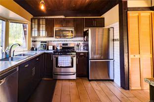 Tucked away in complete privacy yet just minutes from local stores and services, this rural 3-level home offers the best of seclusion and convenience. Set on a level bench of a mossy bluff that rises dramatically behind the house and yard, the property enjoys sweeping views across Quadra Island to the distant peaks of the mainland mountains. The kitchen is a standout, featuring an extra-deep counter and a bright bay window that frames forest and bluff views while flooding the space with natural light. From here, enjoy easy flow to outdoor living: sliding glass doors off the dining room lead to a spacious patio, while another set from the living room opens to a cozy covered deck. The primary suite is exceptionally spacious, complete with a sitting/reading nook, office area, and an ensuite that boasts both dressing and relaxation space. On the lower level, the oversized bedroom could easily accommodate a family or serve as a versatile guest space. The home’s water supply is from a shallow well, treated with a UV light and filter to ensure drinking quality. This property is part of an unrestricted bare land strata — meaning no fees, no minutes, and no bylaws. The long, wooded driveway winds into a circular drive with abundant parking, including room for an RV. A month-to-month tenant currently occupies this property at $1600/month. Quadra Island is renowned for its natural beauty, outdoor recreation, and vibrant community. From hiking and biking trails to golf, tennis, and endless marine adventures, there’s something for everyone. With a quick 10-minute ferry ride to Campbell River—or floatplane access—you’ll always feel connected while enjoying the unmatched island lifestyle. Discover the treasures of Quadra Island and make this special property your new home.