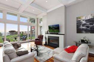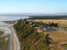 Premiere waterfront estate! This gorgeous Westcoast package offers incredible views, direct beach access, and sits on a 0.75-acre property, only 10 minutes to downtown Comox. Located in an exclusive 17-lot community, and custom built in 2017, this stunning home offers 3,950 sqft of living space with the primary suite on the main level, 1,700 sqft of garage and shop space, plus 2,300 sqft of storage. The home is thoughtfully designed and beautifully finished with a stunning great room featuring 13’ coffered ceilings and a 16’ slider leading to the covered stamped concrete patio, black walnut hardwood floors, cherry cabinetry, and heated tile throughout, and the staircase is a true centrepiece. The home is drenched in natural light with large windows wrapping the space which provide the perfect setting to experience sunrises and sunsets. The second level entertaining area includes a games room, media area, and library, plus a second kitchen. The list of features built into this home is extensive. For more information, please contact Christiaan Horsfall at 250-702-7150