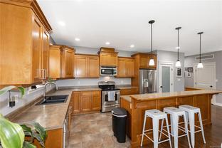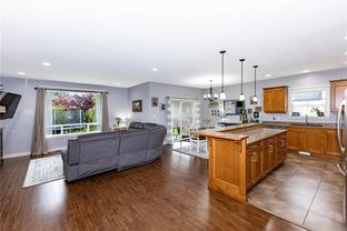 Custom built rancher located in Legacy Estates. Built by Crowne Pacific Homes, this 3 bedroom open plan has plenty of room for the toys with a double car garage and RV parking. This unique design separates the primary bedroom from the other 2 bedrooms. The kitchen is the heart of the home with a huge eat up island over looking the dining and living room with gas fireplace. Step outside the dining area to a covered patio and enjoy the private, .19 acre, fully fenced lot with irrigation. The king-sized primary features a walk-in closet, ensuite with walk-in shower and double sinks. Quality finishing includes: engineered hardwood floors, tile, custom maple cabinetry, custom trim work and 9ft ceilings. This green friendly home includes low E argon windows and energy star heat pump.