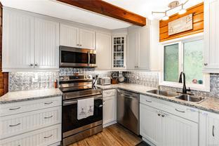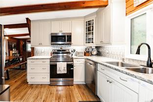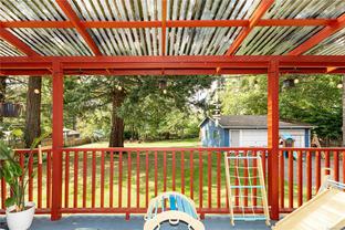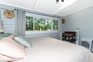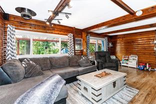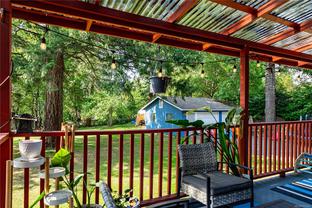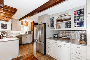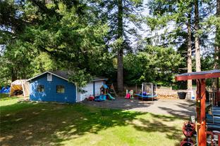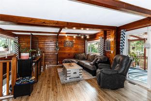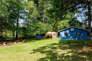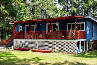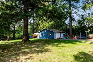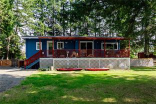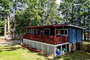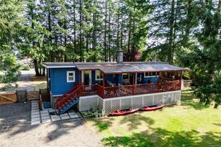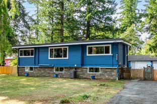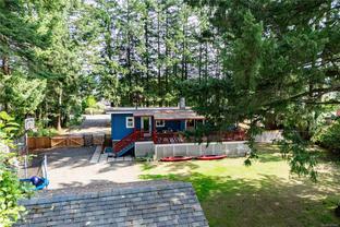Pan-Abode home with detached double car SHOP on 1/2 acre in the Painter Barclay neighbourhood. Beautifully updated home with new vinyl windows, laminate flooring, gas furnace, gas hot water and heat pump. The charming main floor has a newer white kitchen with stainless appliances, beautiful built in hutch for extra storage, vaulted post and beam ceilings, primary bedroom and updated full bathroom with soaker tub. Downstairs you can spread out with 2 more extra large bedrooms, laundry room/storage room and a new bathroom with corner shower heated tile floors. You will love year round BBQ's on your covered deck overlooking a level, fully fenced 1/2 acre with some tall trees creating lovely shade. Excellent parking and a peek-a-boo ocean view. Plenty of parking for all your vehicles with a detached double car garage. Painter Barclay is on all city services yet feels like rural living. Even a peek-a-boo ocean view. This is not a cookie cutter home, this home has charm!