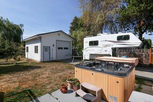 Fabulous Family Home! Pool, hot tub, detached shop, garden shed, RV parking, there’s fun for the whole family! Centrally located on a south facing private lot .22 acre, this split level, 3 BD/ 3 BA, 2,104 sf home has been thoughtfully updated over the years. With 3 split pumps for heating and A/C, gleaming oak flooring, stunning new kitchen 2017, with rich maple cabinets, quartz counters and pantry cabinets w/ pull out shelving. A Vera De patio door to the covered deck where you can jump straight into the heated pool, with Heat Pump & new liner 2024, and easy access to the hot tub. The lower level offers a spacious family room w/ woodstove WETT certified 2023, & laundry/bath, main level offers a Great room with charming Bay window and upstairs 3 bedrooms and 2 baths. Fridge 2025, Dishwasher & Dryer 2024, H/W tank 2023, windows 2010, roof 2007, Duradeck 2012, detached shop 17’9” x 26’3” w/ 60 amp sub panel & plumbed. Wired for EV charger, parking for RV w/ plug & clean out.