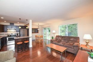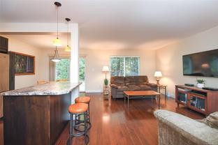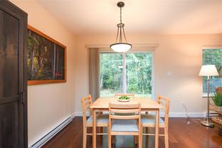 End-unit 3 bed/3 bath townhouse backing onto peaceful greenspace in popular Steam Engine Estates! The main level offers an open-concept layout connecting the kitchen, living, and dining areas. The kitchen features a central island with eat-up bar, generous cabinet and counter space, and stainless steel appliances, including a brand-new dishwasher. Sliding glass doors open to a private patio surrounded by mature cedar and fir trees, perfect for relaxing or entertaining. Upstairs, you’ll find three bedrooms, including a spacious primary suite with 3-piece ensuite and walk-in closet, plus a flex space ideal for a home office or reading nook. Additional highlights include a single-car garage, parking for two vehicles, and a well-managed strata with a healthy contingency fund. Pet-friendly and no age restrictions! Immerse yourself in nature while enjoying vibrant village living, with local shops, cafes, and eateries just a short stroll away, and world-class mountain biking and hiking trails right at your doorstep.