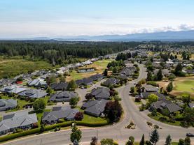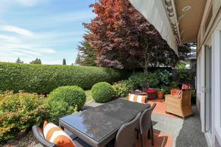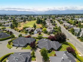 Stunning premier patio home privately located in Britannia Place, an exclusive gated community in Crown Isle Golf Resort. This luxurious one level home of 1,813 sf, 2 BD/ 2 BA plus den has been beautifully updated over the years. Boasting 11’ ceilings in the Great room, maple engineered hardwood, Terra Cotta tile, spectacular kitchen, modern lighting, all trim updated to flat stock, TDBU blinds, skylights, gas fireplace – 2024, H/W on demand – 2021, and a new 50 yr rubber composite roof. Spacious kitchen with contrasting cabinets, gorgeous granite countertops, Fischer Paykel fridge & wall oven, Asko dishwasher, Kitchen Aide cooktop, an island with seating. Adjacent sitting area shares the cozy 2-sided fireplace and a view of the private west exposure patio with gorgeous gardens and 2 awnings w/ drop down sunshade. The primary suite offers a peaceful retreat with bay window seat, storage & built in shelving, lovely 4 pce ensuite w/ 2 sinks & frameless glass & tiled shower. 2 car garage