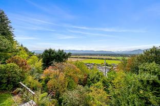 Welcome to your private retreat perched above the Comox Valley! This spacious 2,859 sq ft 5-bedroom, 3-bathroom home captures breathtaking panoramic vistas of farmland, the Coast Mountains, and quintessential Comox Valley Glacier views. Expansive windows and a bright main living area with stone fireplace bring the outdoors in, while the large kitchen and dining spaces open to a sunny deck perfect for entertaining. The lower level offers a generous family room with walkout access to the lush gardens. Outside, enjoy a sparkling inground pool, hot tub, terraced pathways, and a serene Japanese-inspired tea house tucked among mature trees. The landscaped lot offers privacy and tranquility, yet you’re just minutes from Courtenay and Comox. With a double garage, ample parking, and endless potential, this property blends natural beauty, space, and lifestyle. Rarely does a home with such views and setting come to market—don’t miss this extraordinary opportunity!