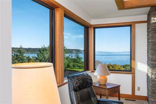 First time offered, architecturally designed, 1 of a kind, 1 owner home offering timeless sophistication and masterful craftsmanship. Poised above the coastline, 41 Ridgeview Place offers breathtaking mountain and ocean vistas. Raised ceilings, clerestory windows, and thoughtful architecture framing views, light and landscape in perfect harmony. Every detail speaks of quality throughout featuring beautiful fir trim packages, custom built-ins, and an artful flow of space. Lives like a rancher with over 2000 sq ft on the main floor, including the ocean view primary suite. The home also features 3 additional bedrooms, a dedicated office, and two flexible unfinished spaces ready to suit your vision. Outdoors, a serene pond graces the garden, and a secluded 30' x 30' sun deck is ideal for quiet mornings or golden evenings. With both a carport and garage, this residence balances luxury with practicality. What truly sets this home apart is its soul—custom, cared for, and incomparable.