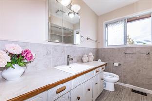 Amazing ocean view, 4/5 bedroom, 3 bath family home. Entertainment sized sundeck, perfect for parties and family gatherings. The open concept kitchen, dining and living room is separated by a double sided wood burning fireplace, all with gorgeous ocean views from every room. This home has been well maintained with most of the windows replaced, new water main, a high efficiency gas furnace and a solar blanket in the attic to keep the home energy efficient. Easy care landscaping (cherry tree, raspberries, blueberries and logan berries) with an automatic in-ground sprinkler system and a fully fenced backyard. The double carport has been enclosed. This space could be used for more family space, a home business or you could turn it back into a carport/garage. RV parking. Lots of storage. Quick possession is possible. Come see this home in an ideal neighbourhood before it's too late.