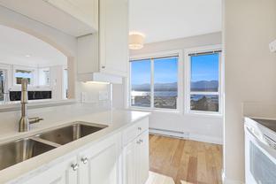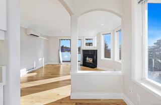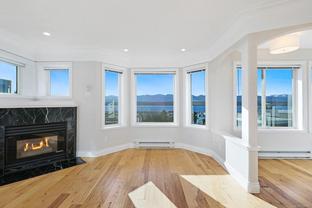 Elevate your daily life in this stunning coastal retreat hidden in the heart of downtown Comox! This south facing 2 bed 2 bath penthouse condo offers breathtaking panoramic ocean, mountain and city views from every window! Bask in copious amounts of natural light, with sunrise and sunset moments you won’t soon forget. Enjoy engineered hardwood flooring, quartz kitchen countertops, and a cozy natural gas fireplace that brings warmth and style. This home features two decks, perfect for soaking up the sun or relaxing in the shade and thoughtfully added touches like phantom screens for that ocean breeze, skylights, solar/privacy window film, and recessed lighting. The spacious laundry room, 6-foot soaker tub, and 3-piece ensuite offer convenience and relaxation. This home is move in ready complete with a heat pump, secure underground parking, a storage locker, and a low-maintenance lifestyle-walking distance to groceries, doctors, dentists, banks, restaurants, bakery, shops, marina, parks and many other services! 2 dogs or 2 cats or 1 dog and 1 cat, not to exceed 15 lbs. Rentals allowed. 55+ building. Strata fee: $514.31 Reserve fund at time of listing: $218,046.76 Come see how this space could make your every day feel extraordinary.